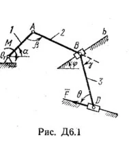 Механизм, расположенный в горизонтальной плоскости, находится в равновесии под действием приложенных сил: положение равновесия определяется углами α, β, γ, φ, θ (рис. Д6.0 — Д6.9, табл. Д6).