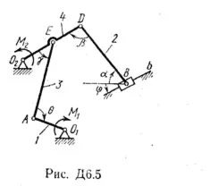 Механизм, расположенный в горизонтальной плоскости, находится в равновесии под действием приложенных сил: положение равновесия определяется углами α, β, γ, φ, θ (рис. Д6.0 — Д6.9, табл. Д6).