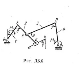 Длины стержней механизма (кривошипов или коромысел) равны: l1 = 0,4 м, l4 = 1,0 м (размеры l2 и l3 произвольны); точка E на рис. 2 — 6 находится в середине соответствующего стержня.