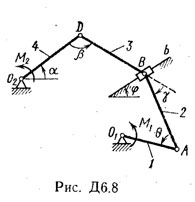 Механизм, расположенный в горизонтальной плоскости, находится в равновесии под действием приложенных сил: положение равновесия определяется углами α, β, γ, φ, θ (рис. Д6.0 — Д6.9, табл. Д6).