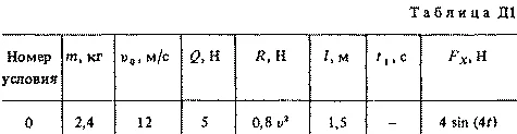 В точке В груз, не изменяя значения своей скорости, переходит на участок ВС трубы, где на него кроме силы тяжести действует переменная сила F, проекция которой Fx на ось x задана в таблице.