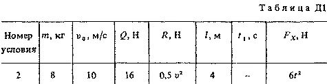 В точке В груз, не изменяя значения своей скорости, переходит на участок ВС трубы, где на него кроме силы тяжести действует переменная сила F, проекция которой Fx на ось x задана в таблице.