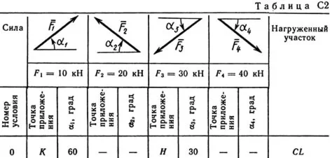 Конструкция состоит из жесткого угольника и стержня, которые в точке С или соединены друг с другом шарнирно (рис. С2.0 — С2.5), или свободно опираются друг о друга (рис. С2.6 — С2.9). Внешними связями, наложенными на конструкцию, являются в точке А или шарнир, или жесткая заделка; в точке В или гладкая плоскость (рис. 0 и 1), или невесомый стержень ВВ' (рис. 2 и 3), или шарнир (рис. 4—9); в точке D или невесомый стержень DD' (рис. 0, 3, 8), или шарнирная опора на катках (рис. 7). На каждую конструкцию действуют: пара сил с моментом М = 60 кН·м, равномерно распределенная нагрузка интенсивности q = 20 кН/м и еще две силы. Эти силы, их направления и точки приложения указаны в табл. С2; там же в столбце «Нагруженный участок» указано, на каком участке действует распределенная нагрузка (например, в условиях № 1 на конструкцию действуют сила F2 под углом 60° к горизонтальной оси, приложенная в точке L, сила F4 под углом 30° к горизонтальной оси, приложенная в точке Е, и нагрузка, распределенная на участке СK). Определить реакции связей в точках А, В, С (для рис. 0, 3, 7, 8 еще и в точке D), вызванные заданными нагрузками. При окончательных расчетах принять а = 0,2 м.