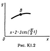 Под номером К1 помещены две задачи К1а и К1б, которые надо решить. Задача К1а. Точка В движется в плоскости xy (рис. К1.0 — К 1.9, табл. К1; траектория точки на рисунках показана условно). Закон движения точки задан уравнениями: x = f1(t), y = f2(t), где x и y выражены в сантиметрах, t — в секундах. Найти уравнение траектории точки; для момента времени t1 = 1 с определить скорость и ускорение точки, а также ее касательное и нормальное ускорения и радиус кривизны в соответствующей точке траектории. Зависимость x = f1(t) указана непосредственно на рисунках, а зависимость y = f2(t) дана в табл. K1 (для рис. 0—2 в столбце 2, для рис. 3—6 в столбце 3, для рис. 7—9 в столбце 4). Как и в задачах С1 — С4, номер рисунка выбирается по предпоследней цифре шифра, а номер условия в табл. К1 — по последней. Задача К1б. Точка движется по дуге окружности радиуса R = 2 м по закону s = f(t), заданному в табл. К1 в столбце 5 (s — в метрах, t — в секундах), где s =AM — расстояние точки от некоторого начала A, измеренное вдоль дуги окружности. Определить скорость и ускорение точки в момент времени t1 = 1 с. Изобразить на рисунке векторы v и a, считая, что точка в этот момент находится в положении M, а положительное направление отсчета s — от А к М.