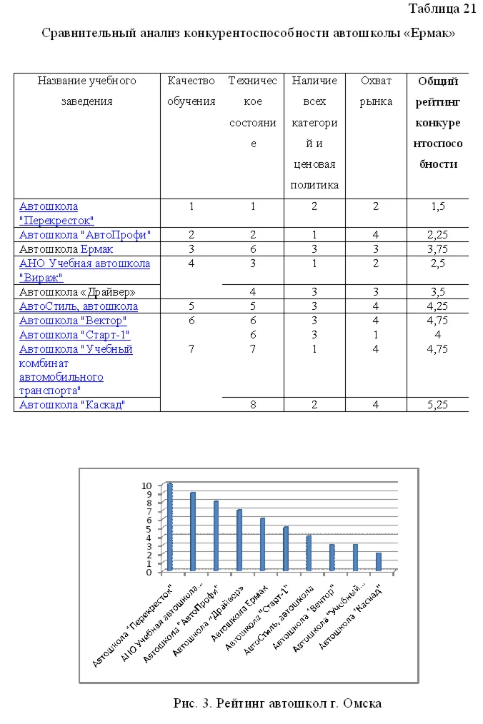 3.4. Результаты анализа конкурентной среды Автошколы «Ермак» 38