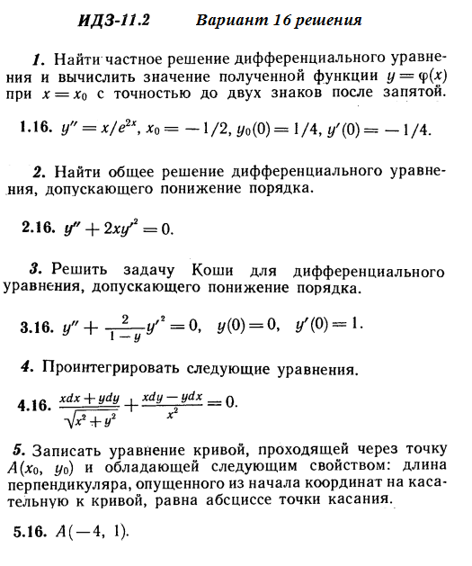 Решения 5-и заданий на дифференциальные уравнения из Рябушко части 2 ИДЗ 11.2 вариант 16
