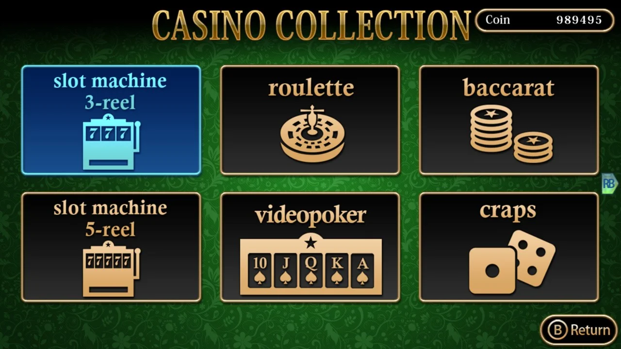Play Roulette, Video Poker, Slot Machines, Craps, Baccarat, Five-Card Draw Poker, Texas hold 'em, Blackjack, and Page One all in one collection!