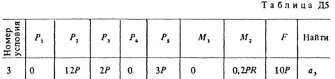 Механическая система состоит из ступенчатых шкивов 1 и2 весом P1 и P2 с радиусами ступеней R1 = R, r1 = 0,4R; R2 = R, r3 = 0,8R (массу каждого шкива считать равномерно распределенной по его внешнему ободу); грузов 3, 4 и сплошного однородного цилиндрического катка 5 весом P3, P4, P5 соответственно (рис. Д5.0-Д5.9 табл. Д5). Тела системы соединены нитями, намотанными на шкивы; участки нитей параллельны соответствующим плоскостям. Грузы Скользят по плоскостям без трения, а катки катяться без скольжения. Кроме сил тяжести на одно из тел системы действует постоянная сила F, а на шкивы 1 и 2 при их вращении действуют постоянные моменты сил сопротивления, равные соответственно M1 и M2. Составить для данной системы уравнение Лагранжа и определить из него величину, указанную в таблице в столбце «Найти», где обозначено: ε1, ε2 – угловые ускорения шкивов 1 и 2; а3, а4, аС5 – ускорения грузов 3, 4 и центра масс катка 5 соответственно. Когда в задаче надо определить ε1, ε2, считать R = 0,25 м. Тот из грузов 3, 4 вес которого равен нулю, на чертеже не изображать. Шкивы 1 и 2 всегда входят в систему.