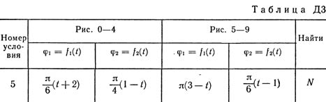 При движении грузов угол φ1 = ∠A2C3D1изменяется по закону φ1 = f1(t), а угол φ2 = ∠A2C3D2 — по закону φ2 = f2(t). В табл. ДЗ эти зависимости даны отдельно для рис. 0—4 и 5—9, где φ выражено в радианах, t — в секундах. Считая грузы материальными точками и пренебрегая всеми сопротивлениями, определить закон изменения со временем величины, указанной в таблице в столбце «Найти», т. е. x3 = t3(t) и N = f(t), где x3 — координата центра C3 плиты (зависимость x3 = f3(t) определяет закон движения плиты), N — полная нормальная реакция направляющих.