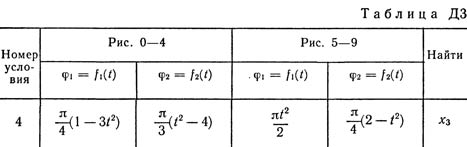 При движении грузов угол φ1 = ∠A2C3D1изменяется по закону φ1 = f1(t), а угол φ2 = ∠A2C3D2 — по закону φ2 = f2(t). В табл. ДЗ эти зависимости даны отдельно для рис. 0—4 и 5—9, где φ выражено в радианах, t — в секундах. Считая грузы материальными точками и пренебрегая всеми сопротивлениями, определить закон изменения со временем величины, указанной в таблице в столбце «Найти», т. е. x3 = t3(t) и N = f(t), где x3 — координата центра C3 плиты (зависимость x3 = f3(t) определяет закон движения плиты), N — полная нормальная реакция направляющих.