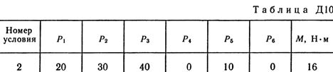 Механическая система состоит из однородных ступенчатых шкивов 1 и 2, обмотанных нитями, грузов 3—6, прикрепленных к этим нитям, и невесомого блока (рис. Д10.0 — Д10.9, табл. Д10). Система движется в вертикальной плоскости под действием сил тяжести и пары сил с моментом М, приложенной к одному из шкивов. Радиусы ступеней шкива 1 равны: R1 = 0,2 м, r1 — 0,1 м, а шкива 2 — R2 = 0,3 м, r2 = 0,15 м; их радиусы инерции относительно осей вращения равны соответственно ρ1 = 0,1 м и ρ2 = 0,2 м. Пренебрегая трением, определить ускорение груза, имеющего больший вес; веса Р1, …, Р6 шкивов и грузов заданы в таблице в ньютонах. Грузы, веса которых равны нулю, на чертеже не изображать (шкивы 1, 2 изображать всегда как части системы).
