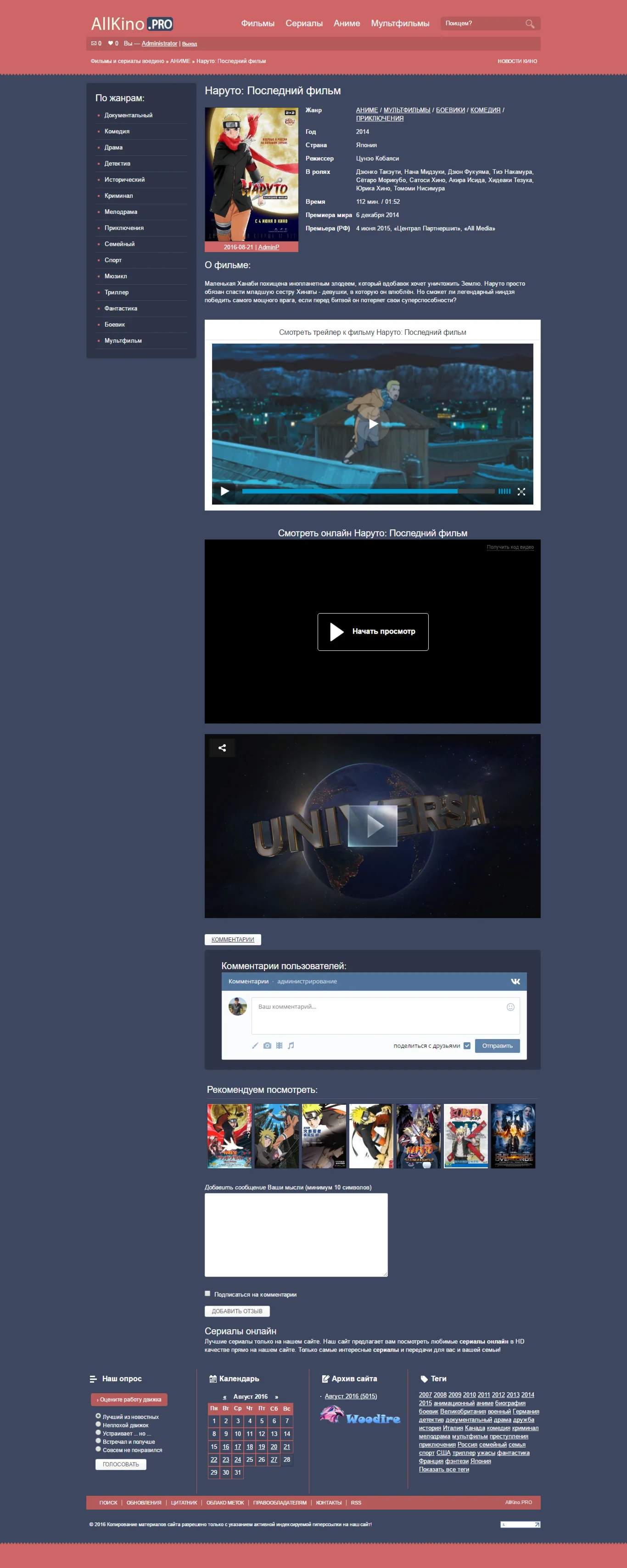 Предназначен для (тематика) : Видео, Кино