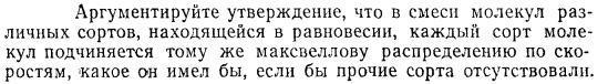 Аргументируйте утверждение, что в смеси молекул различных сортов, находящейся в равновесии, каждый сорт молекул подчиняется тому же максвеллову распределению по скоростям, какое он имел бы, если бы прочие сорта отсутствовали.