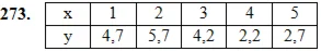 271 – 280. Экспериментально получены пять значений искомой функции y = f(x) при пяти значениях аргумента, которые записаны в таблице. Методом наименьших квадратов найти функцию y = f(x) в виде y = ax + b.