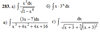 281 – 290. Найти неопределенные интегралы. В двух первых примерах [п. а) и б)] проверить результаты дифференцированием.