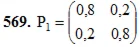 561-570. Задана матрица P1 вероятностей перехода цепи Маркова из состояния i (i = 1, 2) в состояние j (j = 1, 2) за один шаг. Найти матрицу P2 перехода из состояния i в состояние j за два шага.