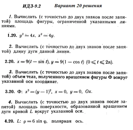 ИДЗ 9.2 Вариант 20 Рябушко (задания на стр. 188-192 в учебнике)