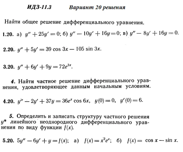 ИДЗ 11.3 Вариант 20 Рябушко (задания на стр. 314-321 в учебнике)