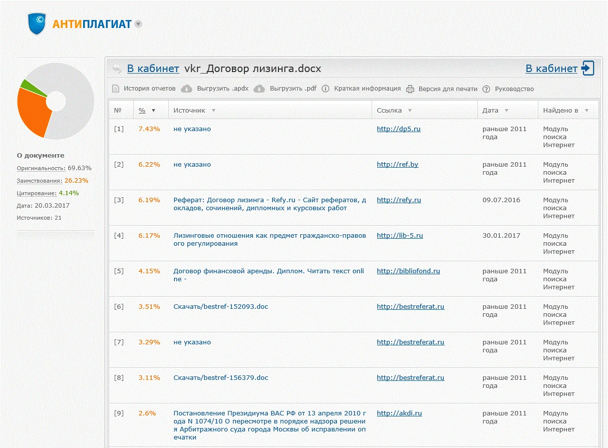 Готовый диплом на тему: Договор лизинга успешно защищен в 2017 году, оригинальность - 69%.