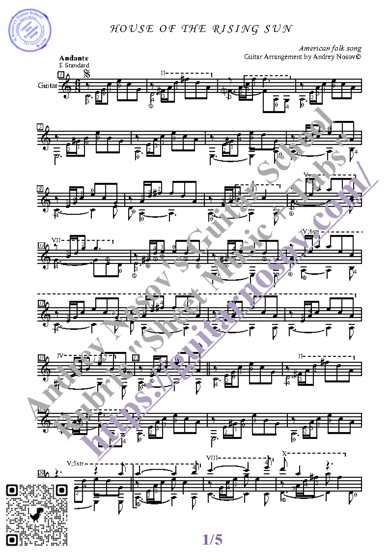 Магазин » House of the Rising Sun (Ноты, табы, гитара соло)