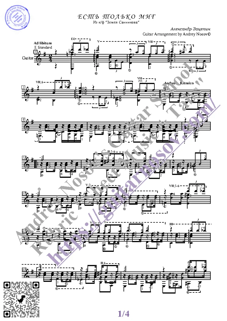 Товар состоит из двух частей (pdf / png*): 1 – Ноты с табулатурой; 2 – Ноты без табулатуры. Прилагается ссылка на скачивание mp3.