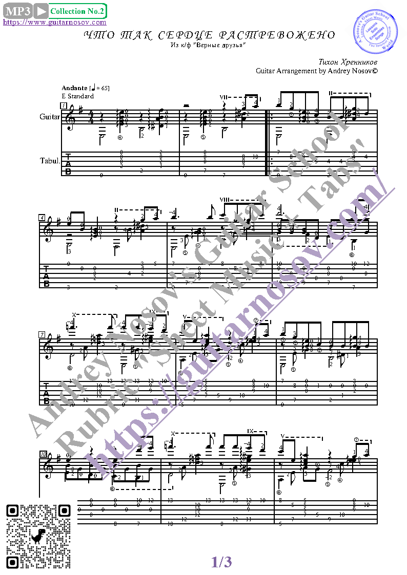 Товар состоит из двух частей (pdf / png*): 1 – Ноты с табулатурой; 2 – Ноты без табулатуры. Прилагается ссылка на скачивание mp3.