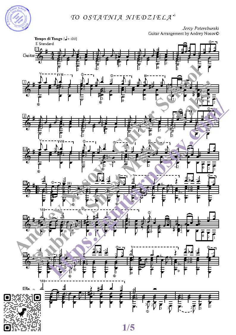 Товар состоит из двух частей (pdf / png*): 1 – Ноты с табулатурой; 2 – Ноты без табулатуры. Прилагается ссылка на скачивание mp3.
