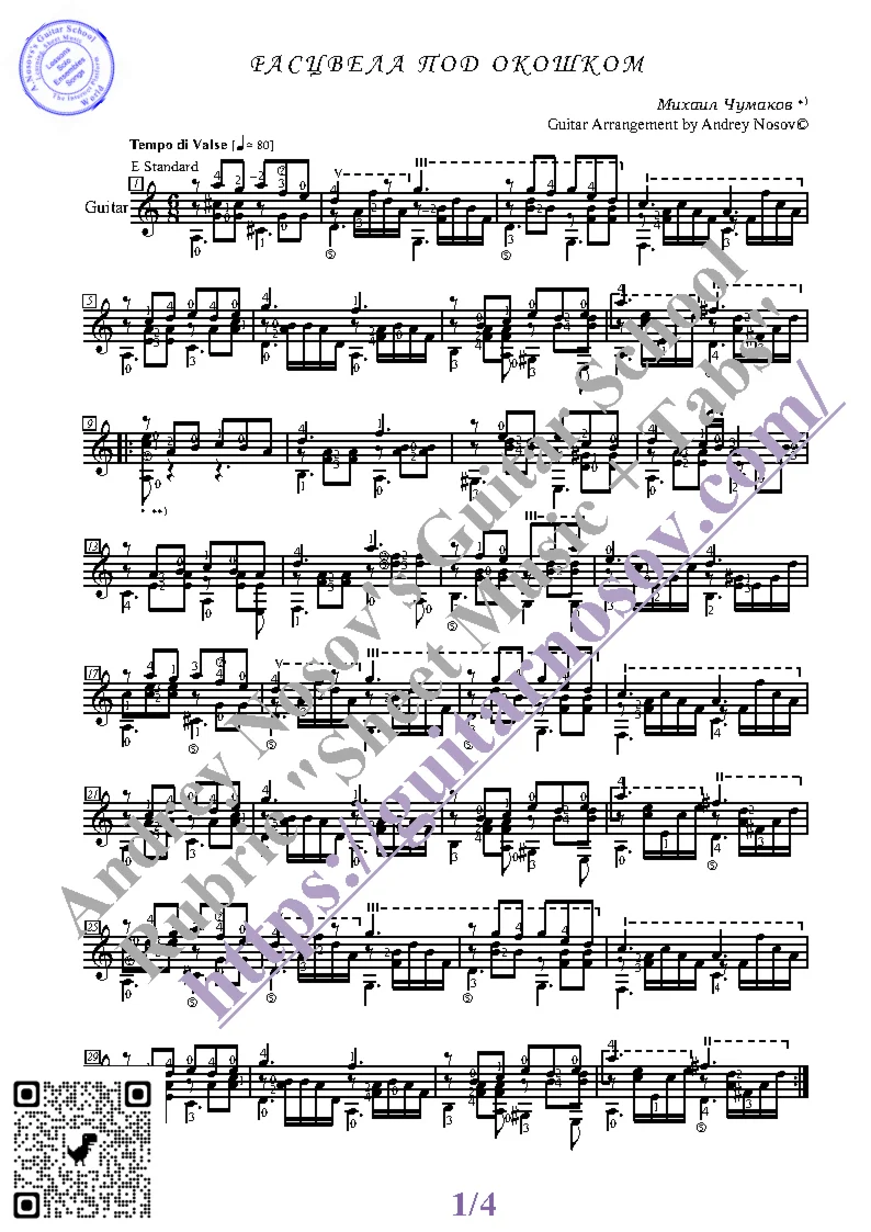 Магазин » Расцвела под окошком (Ноты и табы для гитары соло)