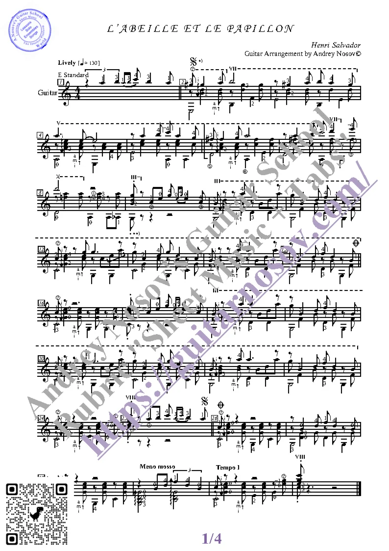 Вашему вниманию предлагается композиция "Labeille Et Le Papillon (H.Salvador)", предназначенная для исполнения на 6-ти струнной гитаре СОЛО. Запись выполнена нотами, сопровождена подробнейшей аппликатурой и продублирована табулатурой. Товар состоит из двух частей (pdf / png*): 1 – Ноты с табулатурой; 2 – Ноты без табулатуры. Прилагается ссылка на скачивание mp3.