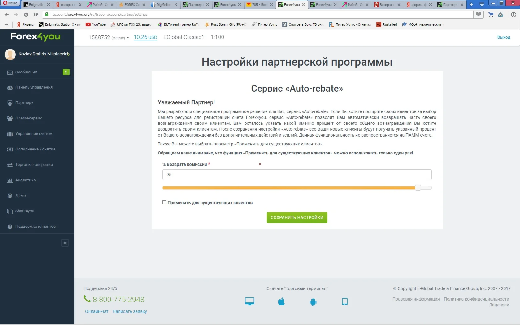 Магазин » Автоматический возврат 62% спреда на Ваш торговый счет