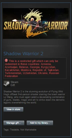 Магазин » Shadow Warrior 2 (Steam gift RU + CIS) + подарок