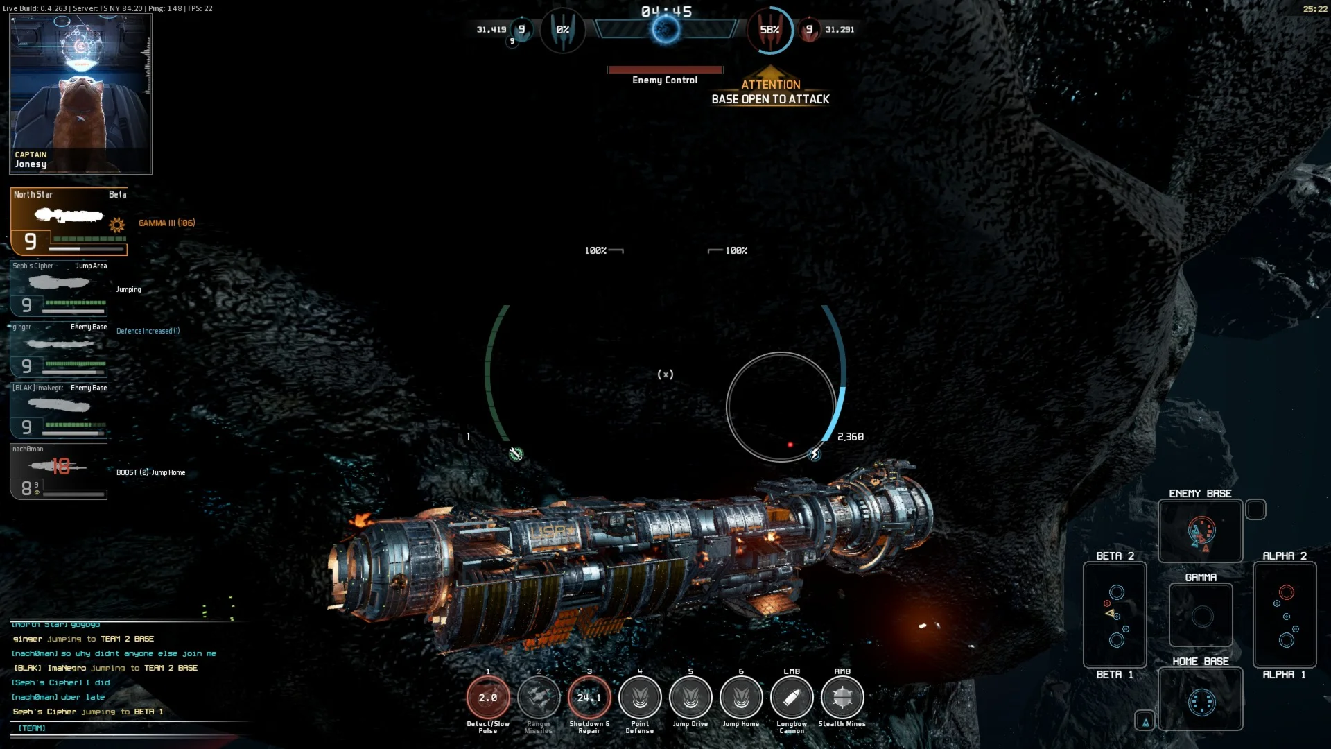 Геймплей представляет собой бои в реальном времени на огромной арене с захватом и удержанием точек. Арена разделена на пять секторов: два «домашних», два фланговых «альфа и бета» и центральный сектор «гамма». Перемещение в данной игре происходит по средствам коротких warp-прыжков, при этом из «дома» вы можете прыгнуть только на ближайшие точки боковых секторов, что полностью исключает возможность zerg-раша и позволяет «расставить» силы перед началом главного боя. Победа одной из команд зачисляется только по факту захвата «домашнего» сектора противника, поэтому даже после тотального доминирования противником, у вас будет шанс на победу. Вариантов на хитрые тактические маневры огромное множество, пробуйте!