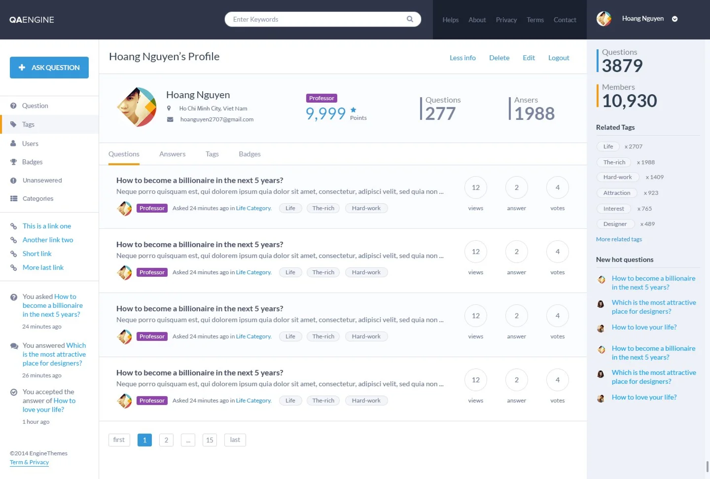 Описание на ThemeForest: https://themeforest.net/item/qaengine-question-and-answer-wordpress-theme/7972399