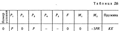На участке нити, указанном в таблице в столбце "Пружина", включена пружина с коэффициентом жесткости с (например, если в столбце стоит АВ, то участок АВ является пружиной, если AD, то AD пружина, и т.д.); в начальный момент времени пружина не деформирована.