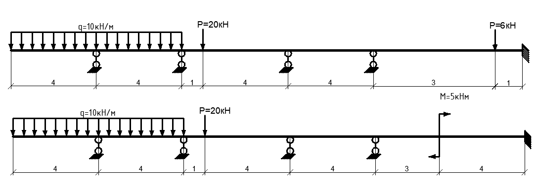 Задача по строительной механике "Расчет неразрезных балок".