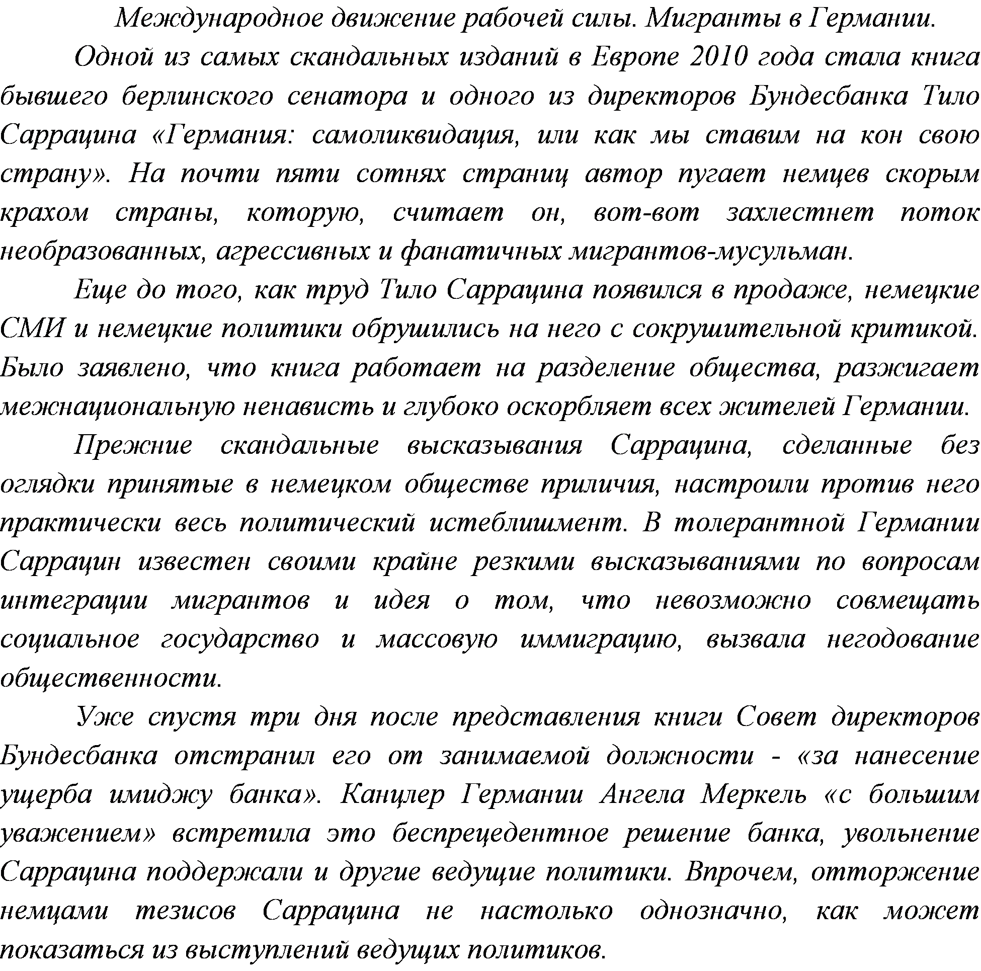 1. Назовите основные причины, обеспечивающие приток мигрантов в Германию.