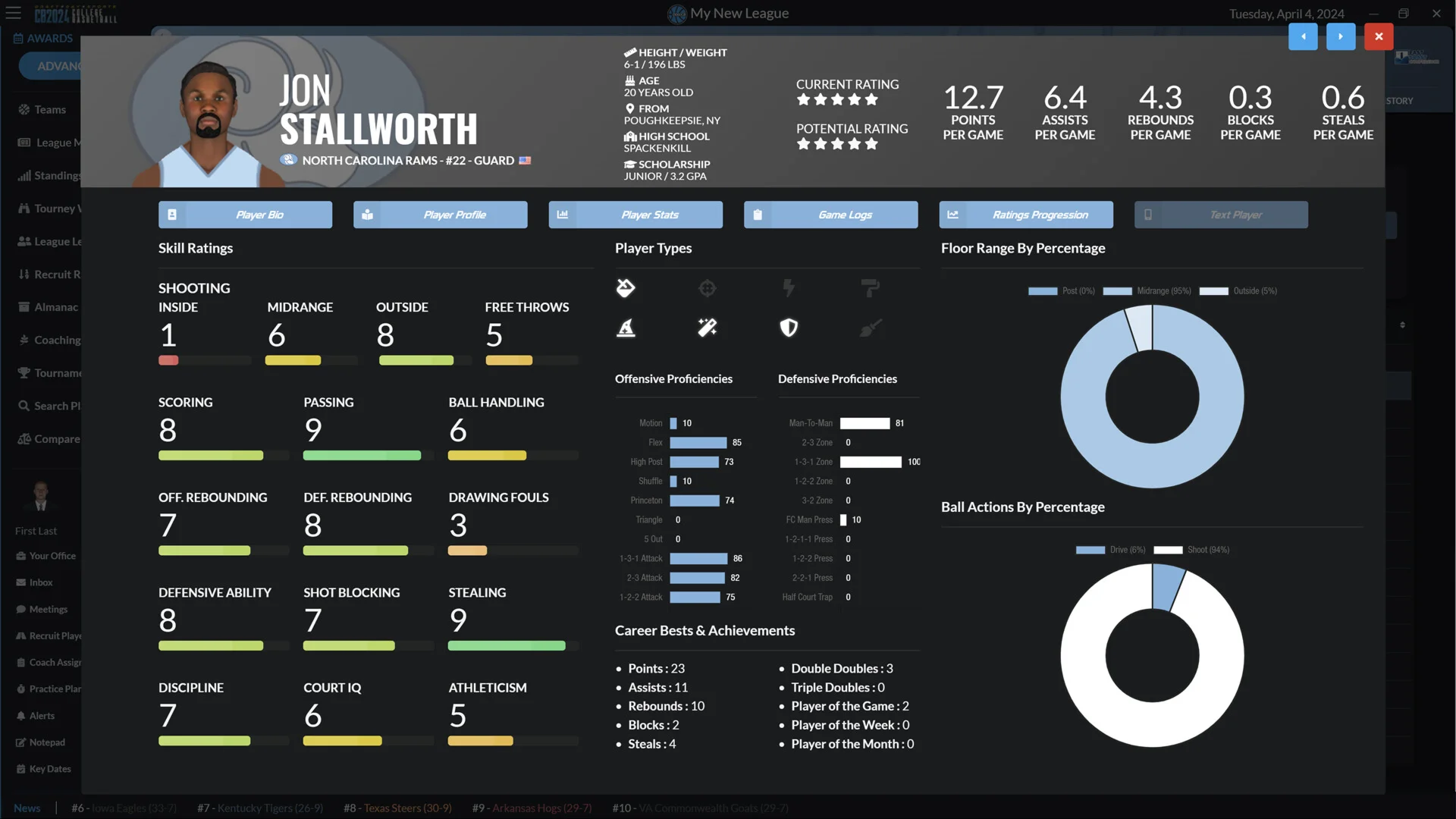 Lead your college basketball team in Draft Day Sports: College Basketball 2024. Recruit stars, coach for success, and make key decisions with an improved UI, player reveals, enhanced player control, and a revamped transfer portal. The ultimate coaching simulation game!