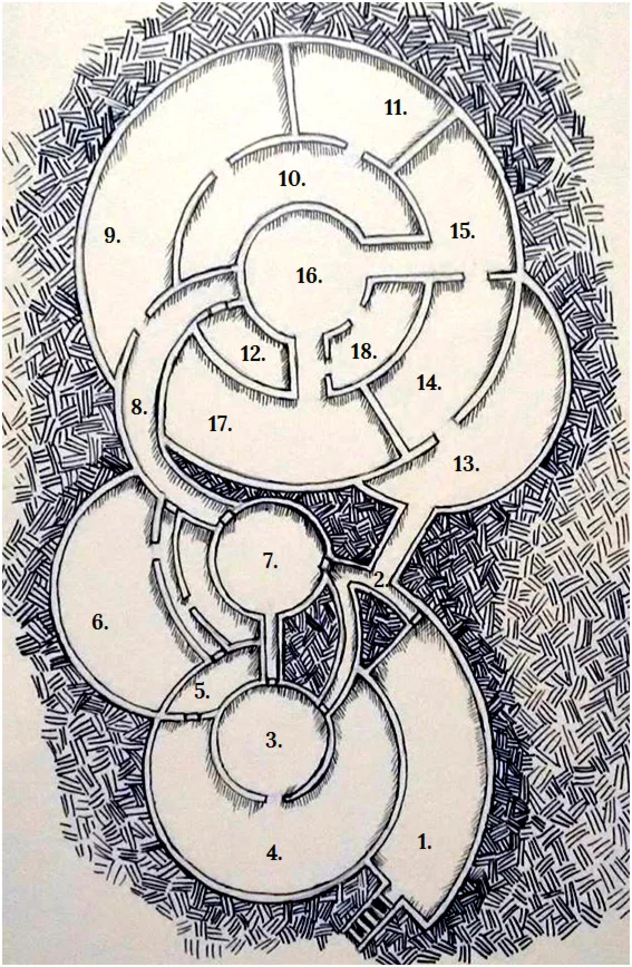 Что внутри: Сценарий приключения на одной странице в виде карты подземелья с пометками для мастера игры об особенностях подземелья, сокровищах и населяющих существах.
