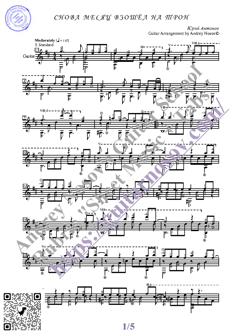 Купить Снова месяц взошёл на трон (Ноты, табы, гитара соло)