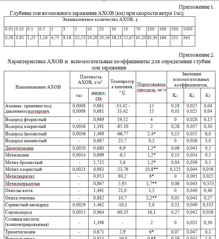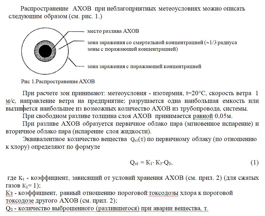 Определение глубины распространения аварийно химических опасных веществ при разливе их с поражающей концентрацией