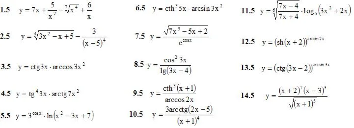 1. Продифференцировать данные функции (1-14)