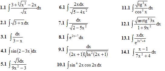 1. Найти неопределенные интегралы (в заданиях 1-5 результаты интегрирования проверить дифференцированием). (1-14)