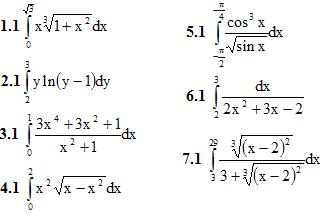 1. Вычислить определенные интегралы с точностью до двух знаков после запятой. (1-7)