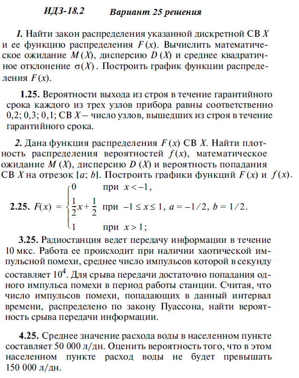 Решения 4-х задач по теории вероятностей из Рябушко части 4 ИДЗ 18.2 вариант 25