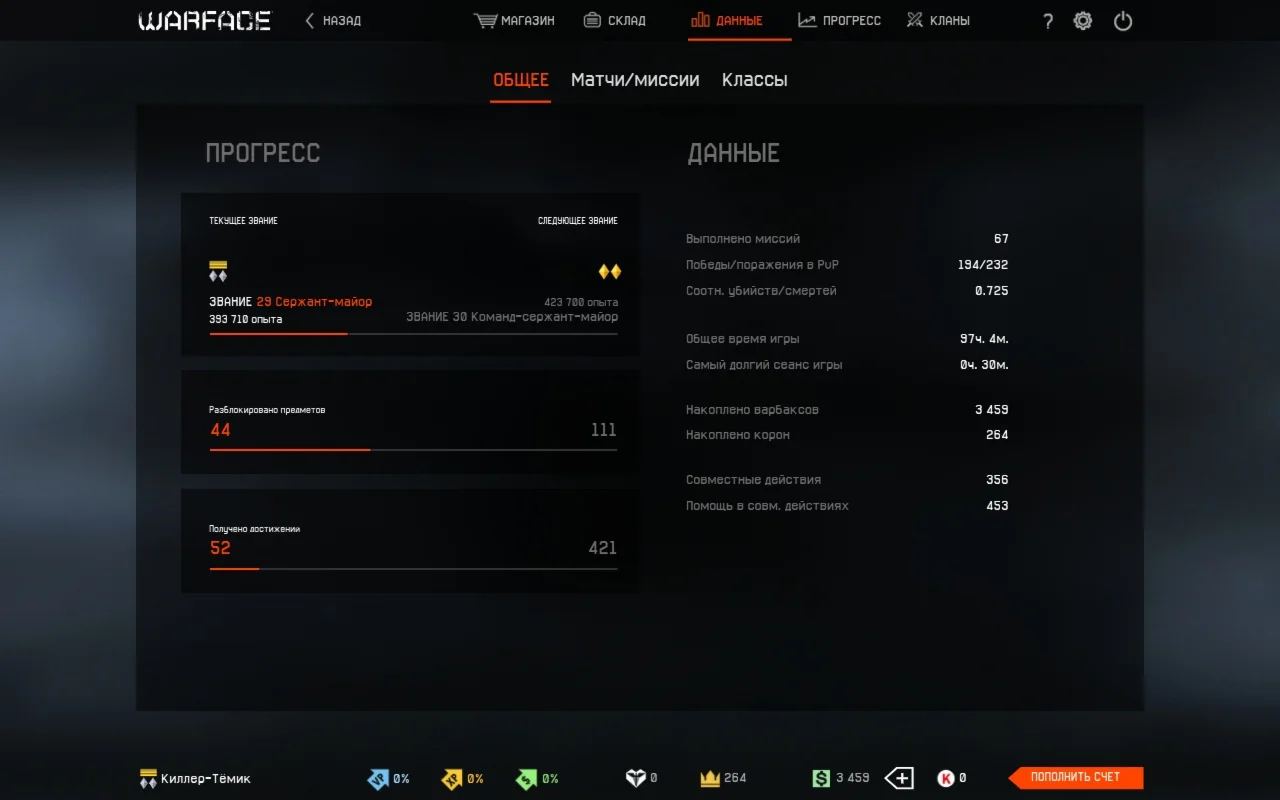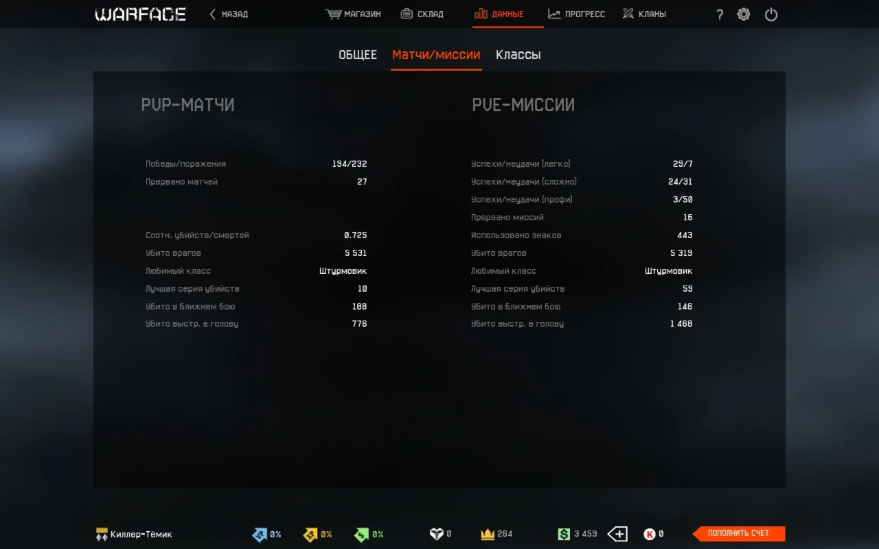 • № лота аккаунта WarFace: 531.