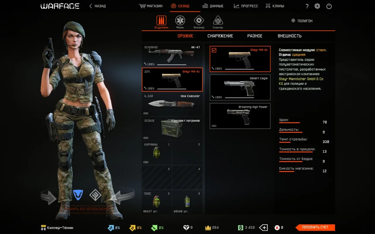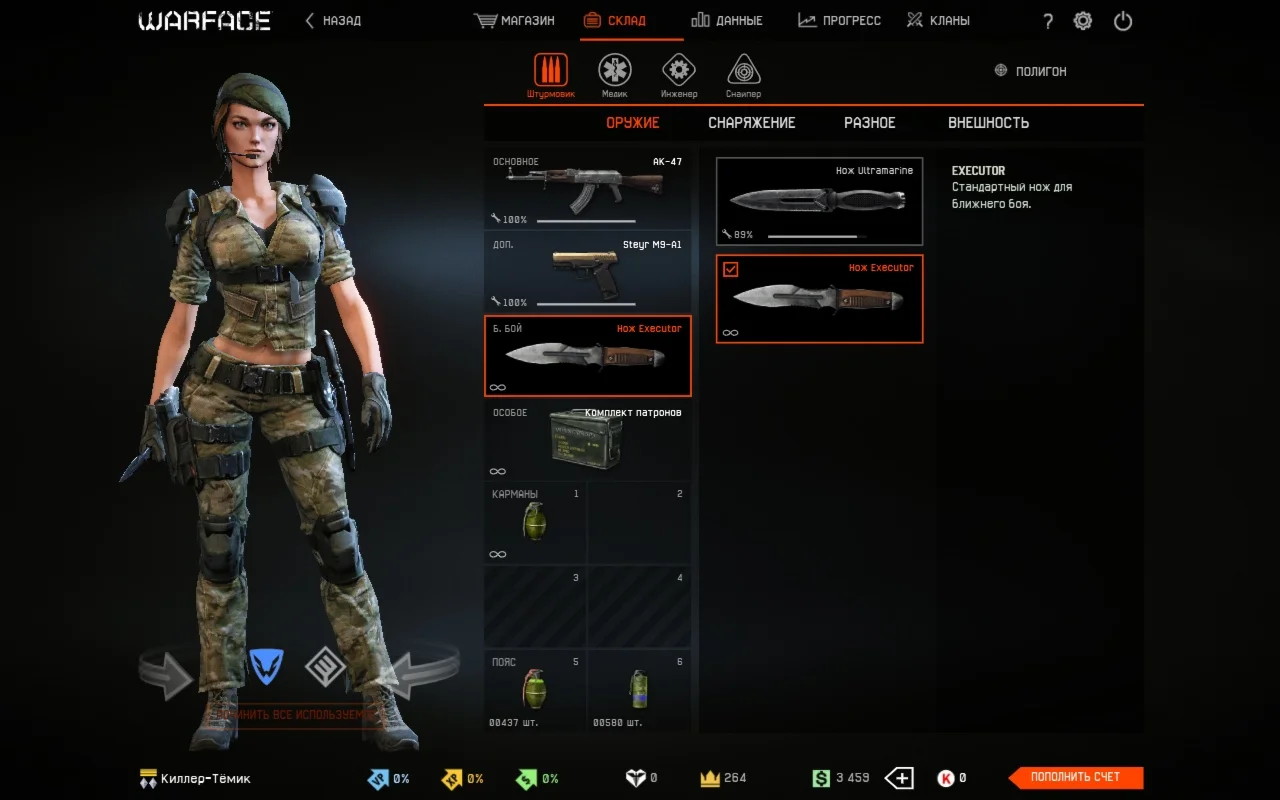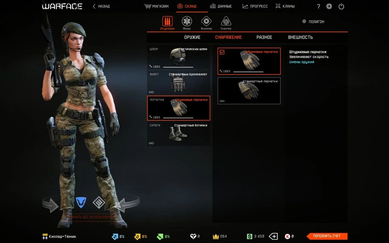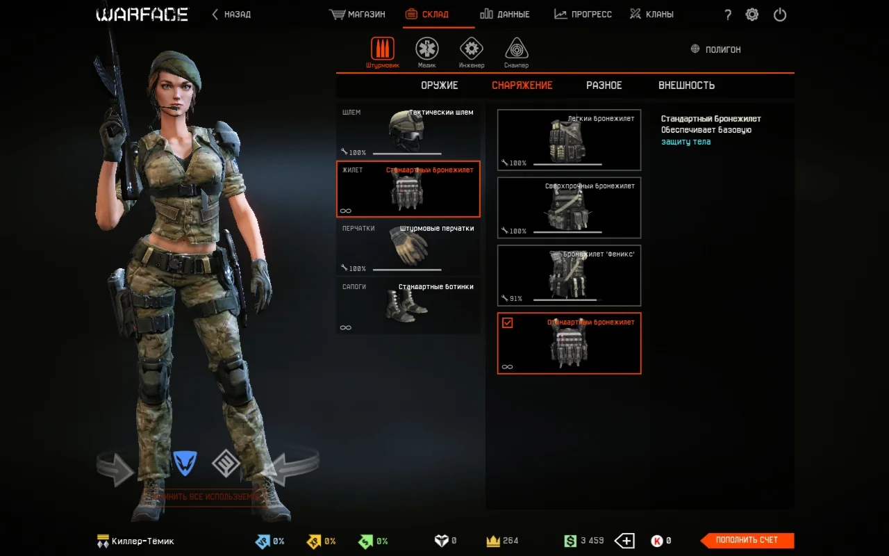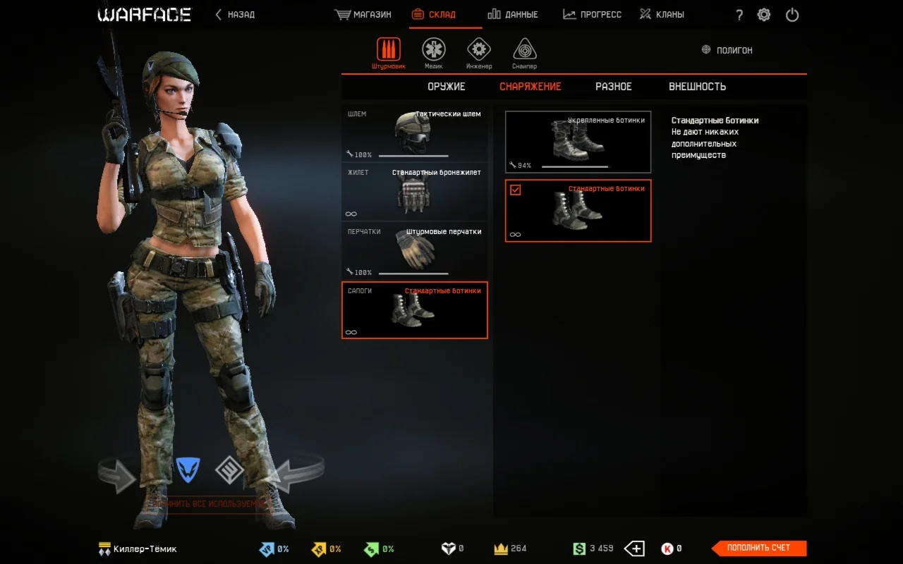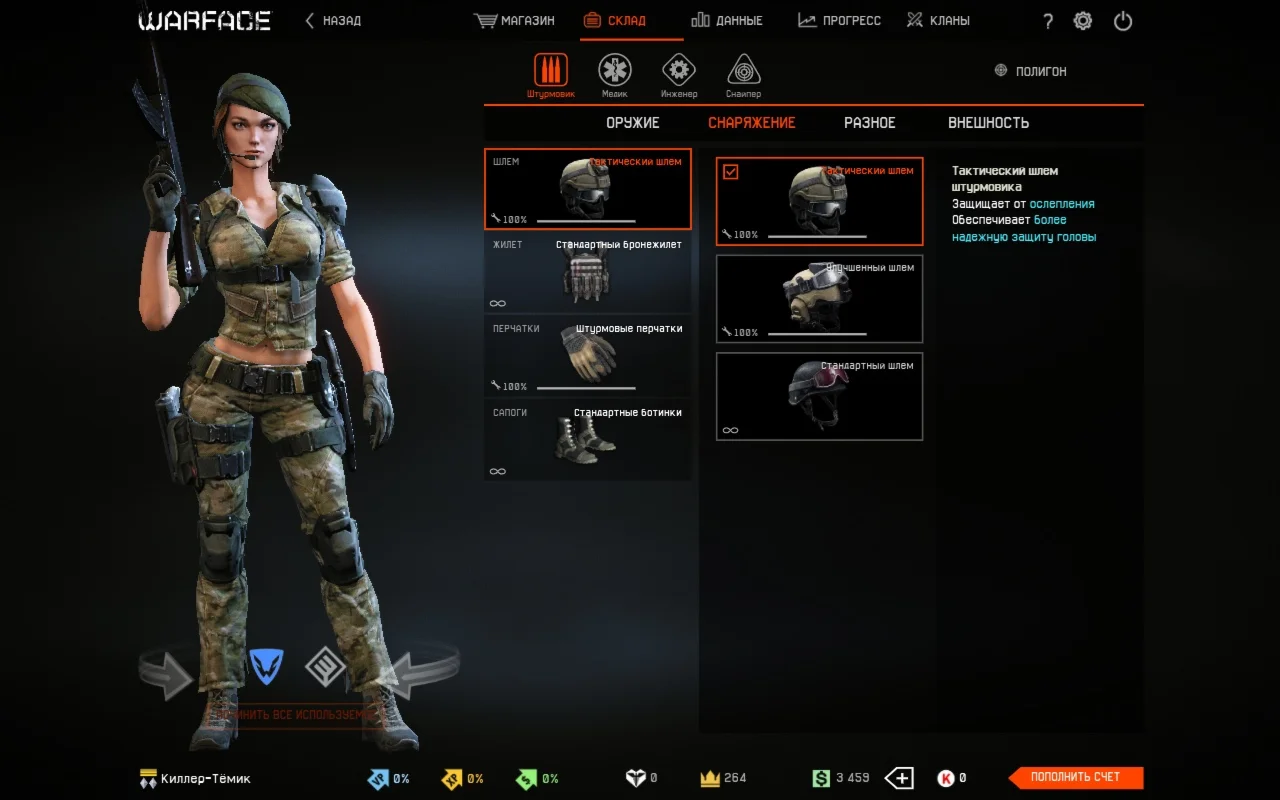 • Донат скины за кредиты: Москит; Штурмовик отряда "Ночной Тигр"; Униформа штурмовика РФ; Штурмовик отряда Аврора"; Медик отряда "Ночной Тигр"; Медик отряда "Аврора"; Униформа Медика РФ; Скорпион; Медик отряда "Пандора"; Термит; Униформа инженера РФ; Инженер отряда "Ночной Тигр"; Инженер отряда "Аврора"; Снайпер отряда "Ночной Тигр"; Шершень; Снайпер отряда "Аврора".