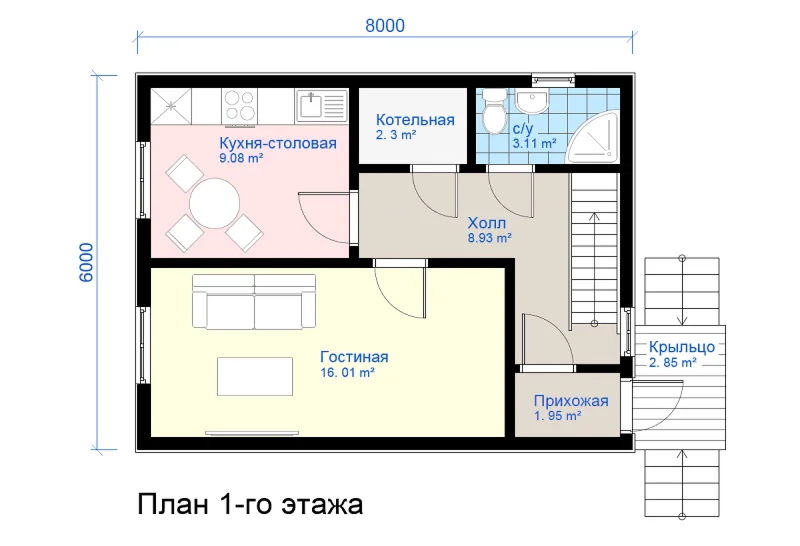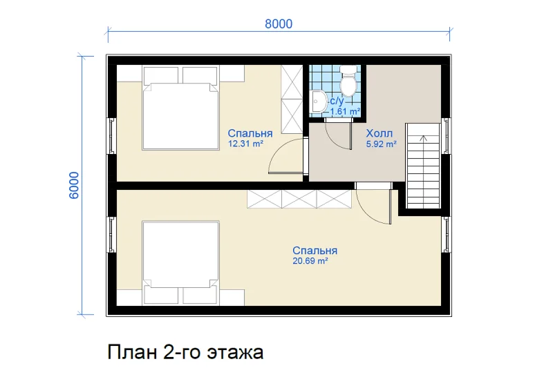 - Размер в плане - 6х8 м