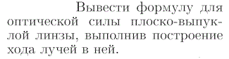 Вывести формулу для оптической силы плоско-выпуклой линзы, выполнив построение хода лучей в ней.