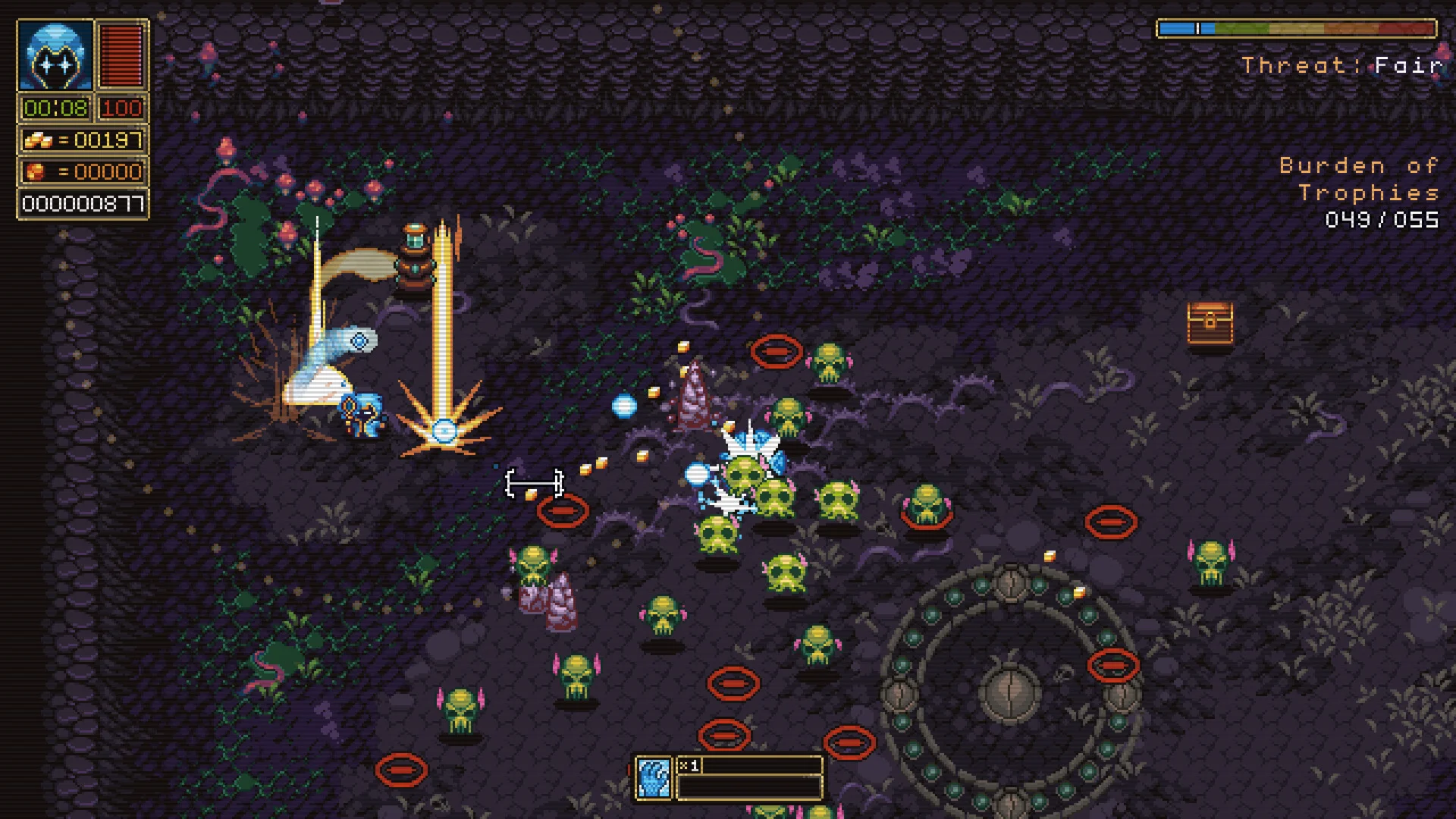 Boons & Burdens is a single player action-roguelike set in the depths of hell. Battle hordes of demons through 9 levels, collect gems to purchase powerful boons, and choose from deadly burdens that alter the game's difficulty. Will you be the paragon of power or the architect of your own defeat?