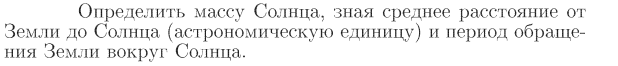 Определить массу Солнца, зная среднее расстояние от Земли до Солнца (астрономическую единицу) и период обращения Земли вокруг Солнца.